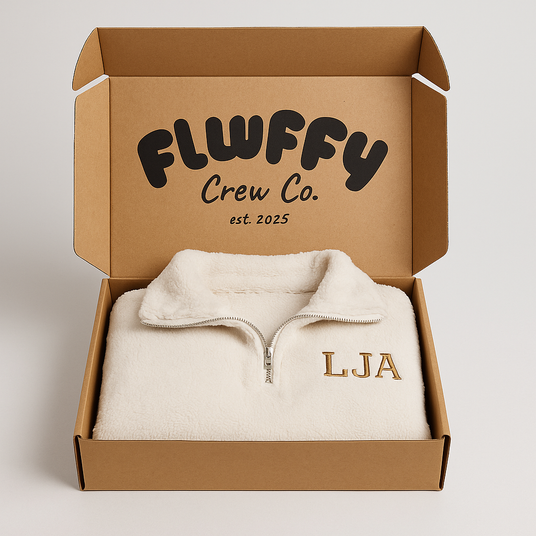 Every Fluffy Crew Co. piece is embroidered to order and arrives beautifully packaged in our signature gift box - ready to give and guaranteed to feel special.